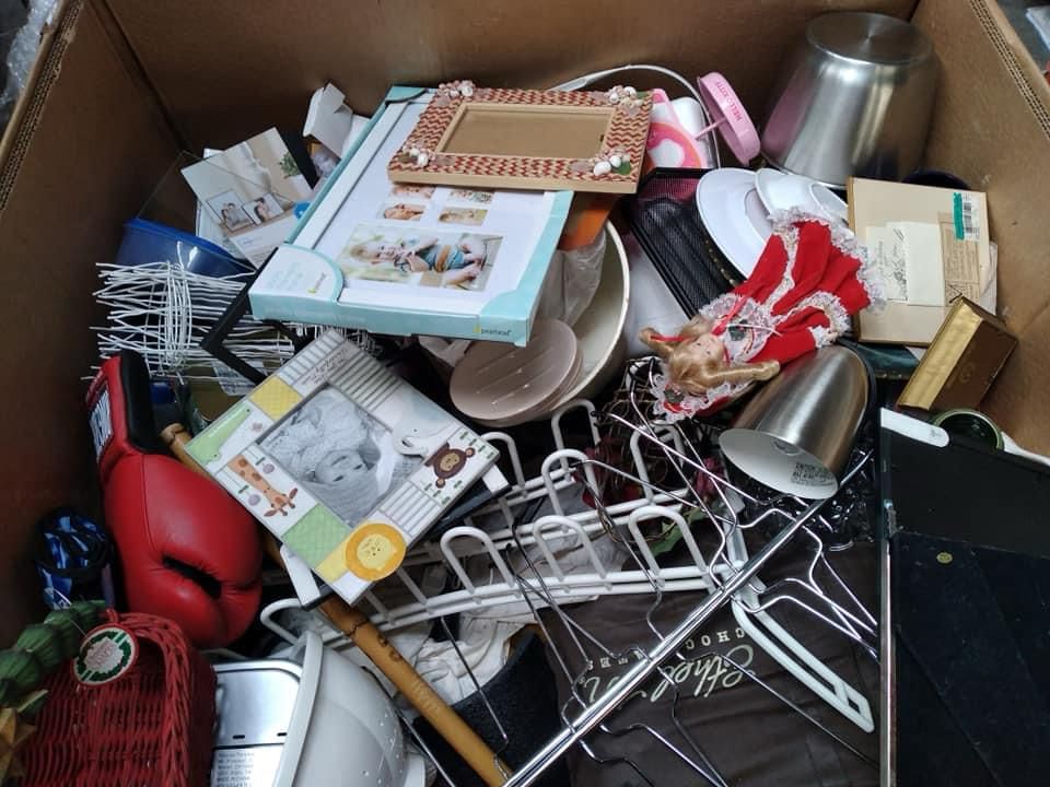 Miscelánea en cajas de 350 – 400 libras. Las cajas incluyen variedad de artículos de hogar en buen estado.